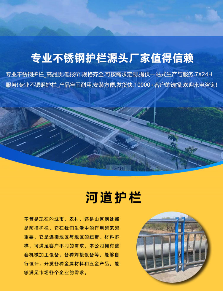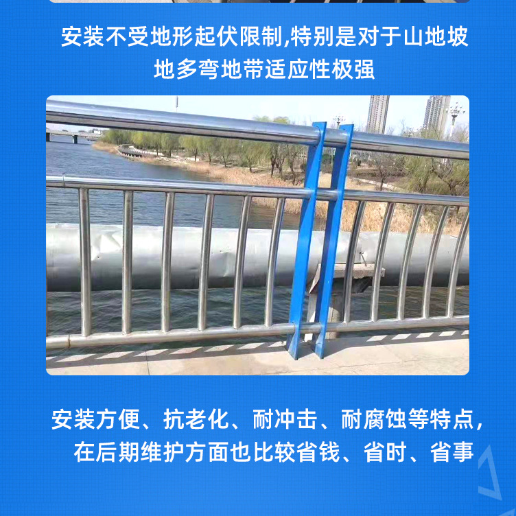 河道護(hù)欄不僅具有不銹鋼管的豪華美觀和現(xiàn)代氣息,又具有普通碳鋼管的堅韌性。是價昂不銹鋼管的替代品,它與鋼板立柱配合,做成城市、道橋等的安全欄桿。 不僅牢固、大方,且可造型各異,給都市別一種亮麗風(fēng)景線。